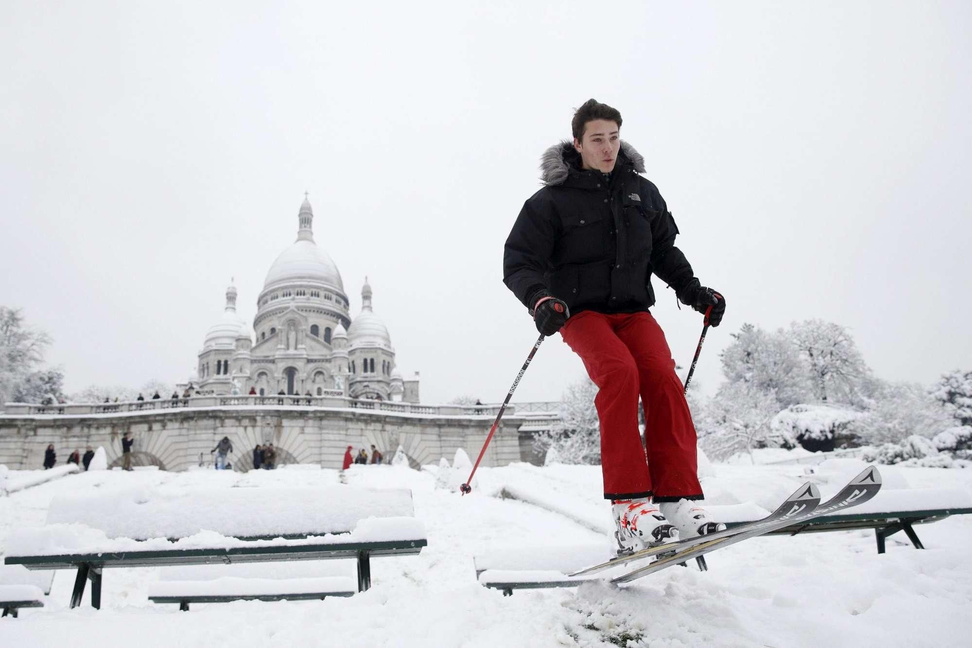 Neve a Parigi: sciatori sulla collina di Montmartre