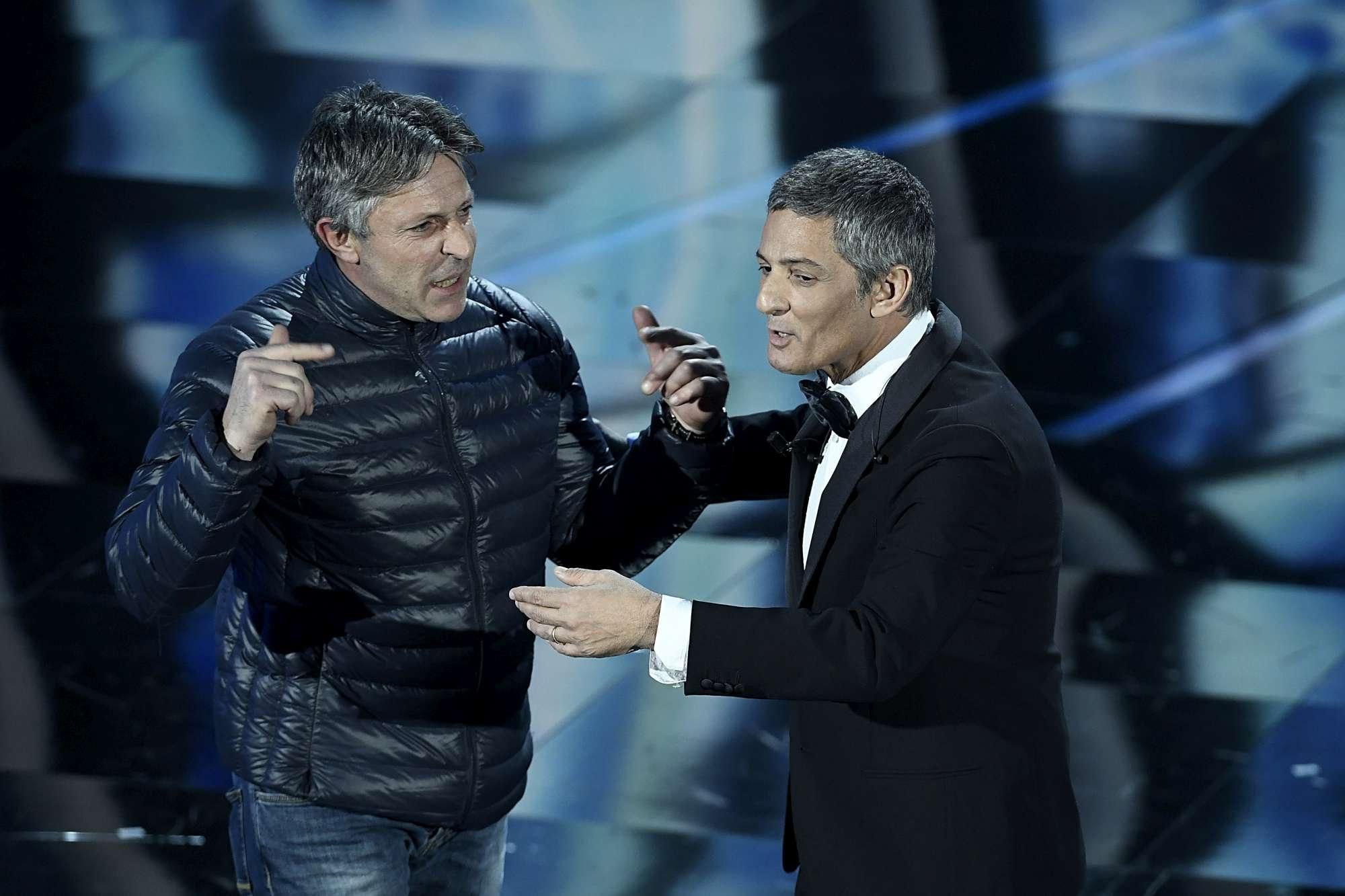 © LaPresse|La prima serata si apre con l'incursione sul palco di una persona, nella miglior tradizione del Festival, da Cavallo pazzo in giù. Ma Fiorello controlla la situazione e tutto si chiude senza problemi