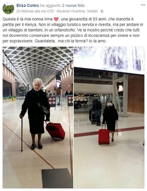 Vicenza, a 93 anni va in Kenya per aiutare i bambini orfani