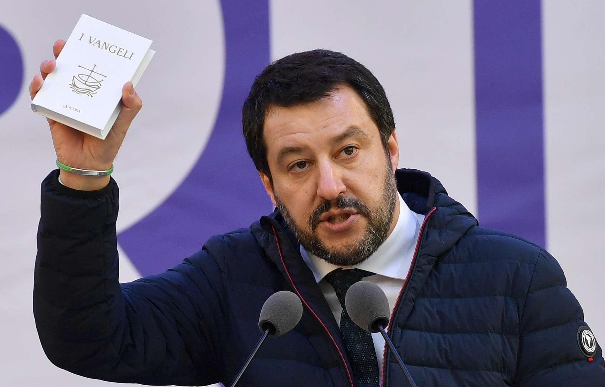 Elezioni, Salvini giura sul Vangelo e col rosario in mano: "Rispetterò la Costituzione"