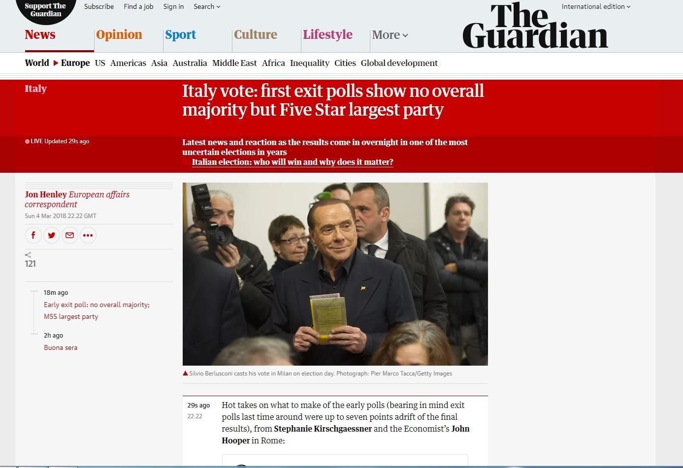 Elezioni 2018, media esteri: "L'Italia senza una maggioranza"