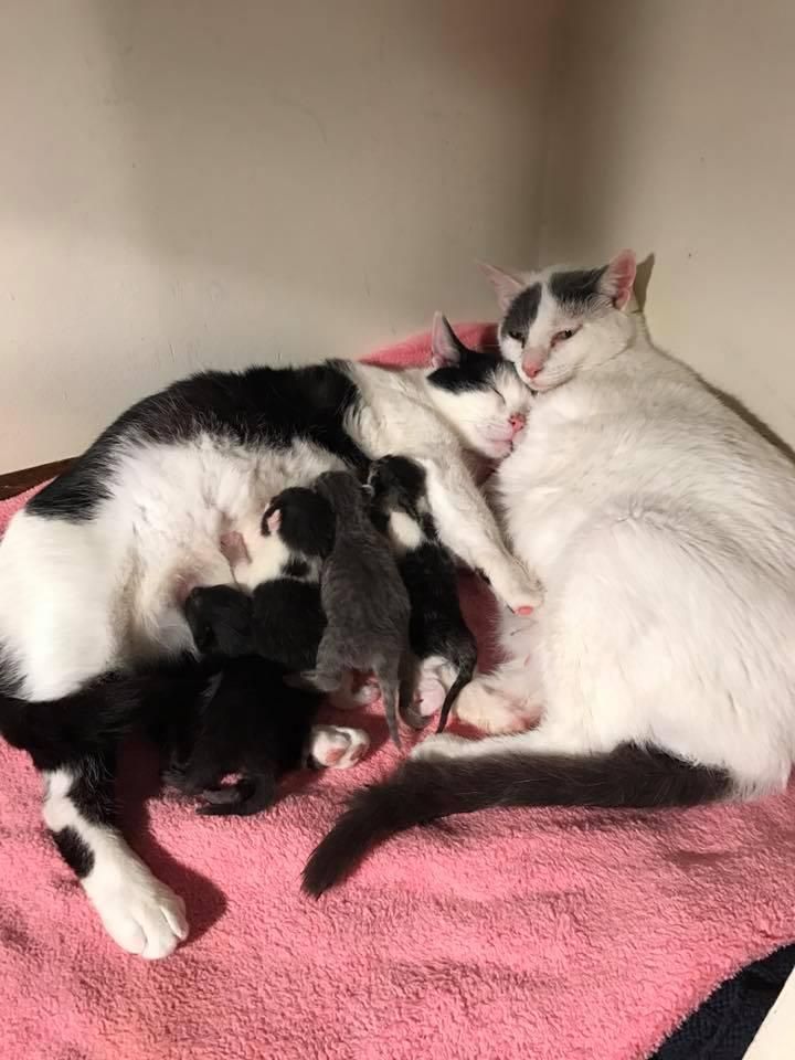 Due mamme-gatte sono meglio di una: in rifugio assistenza reciproca al parto
