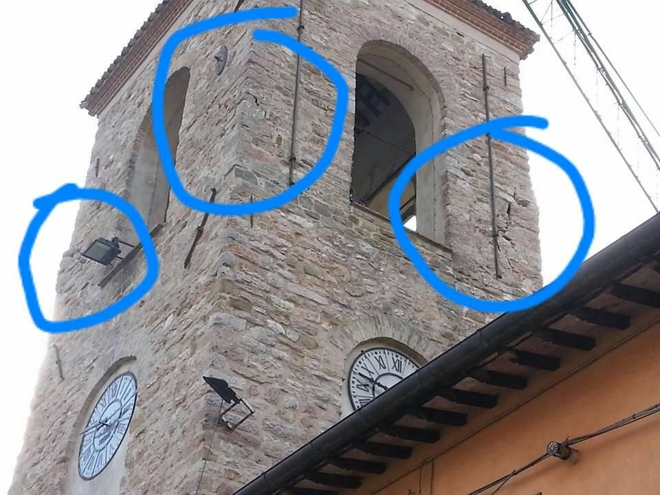 Muccia, crepe su un campanile dopo il sisma del 2016