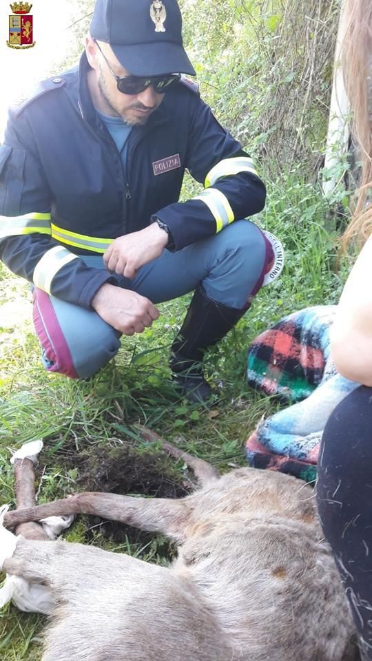 Lucca, poliziotti fanno scudo a un capriolo e lo salvano dall'investimento