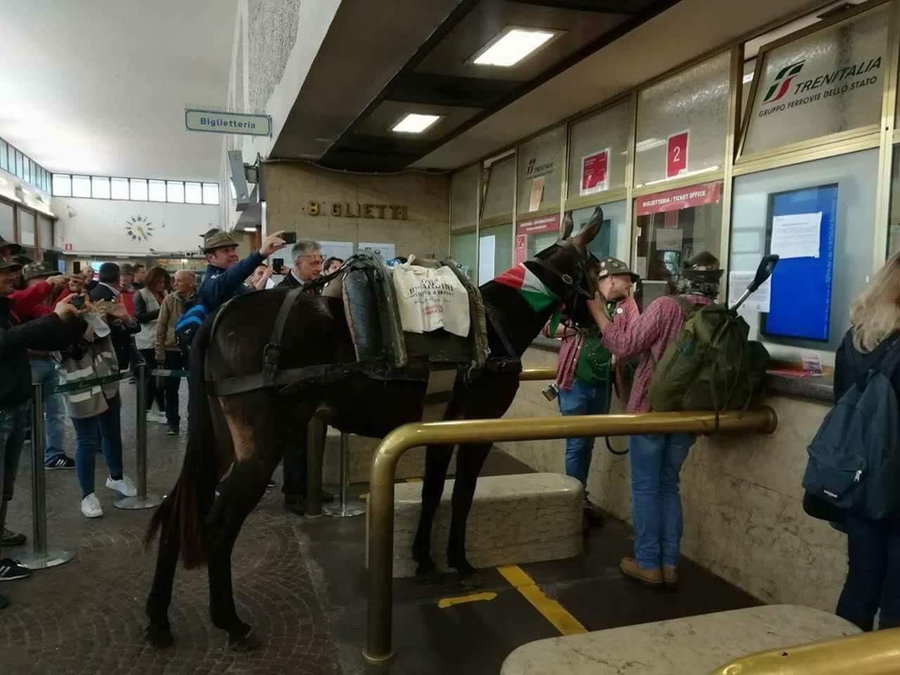 Adunata alpini a Trento: avvistato un mulo allo sportello della biglietteria