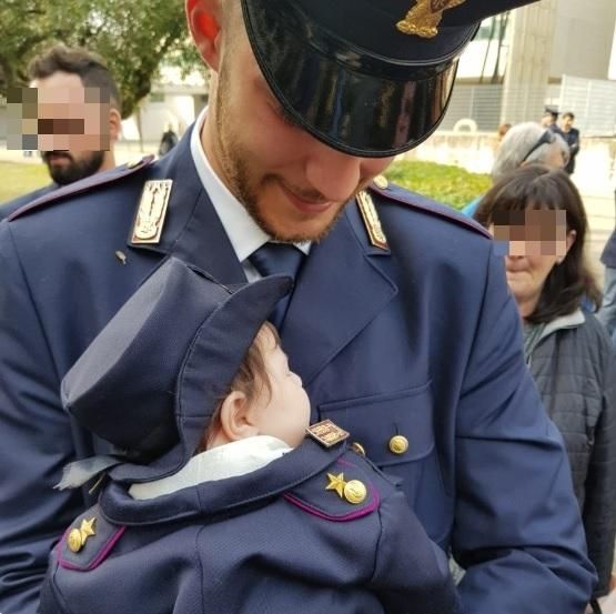 Tale padre, tale figlia: al giuramento del poliziotto anche la sua bimba di due mesi è in divisa