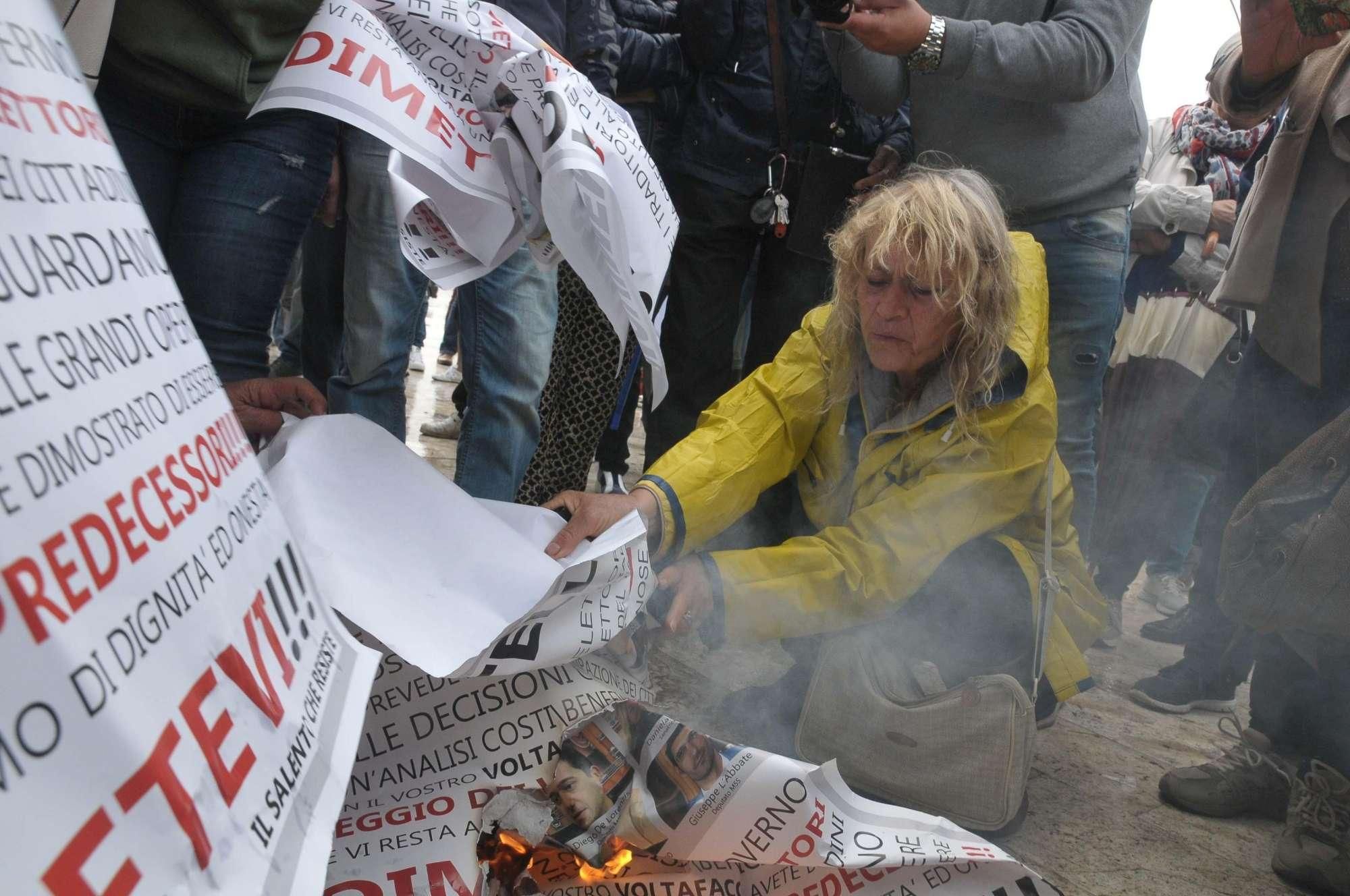 Lecce, protesta contro il M5s: bruciate tessere elettorali e foto di politici