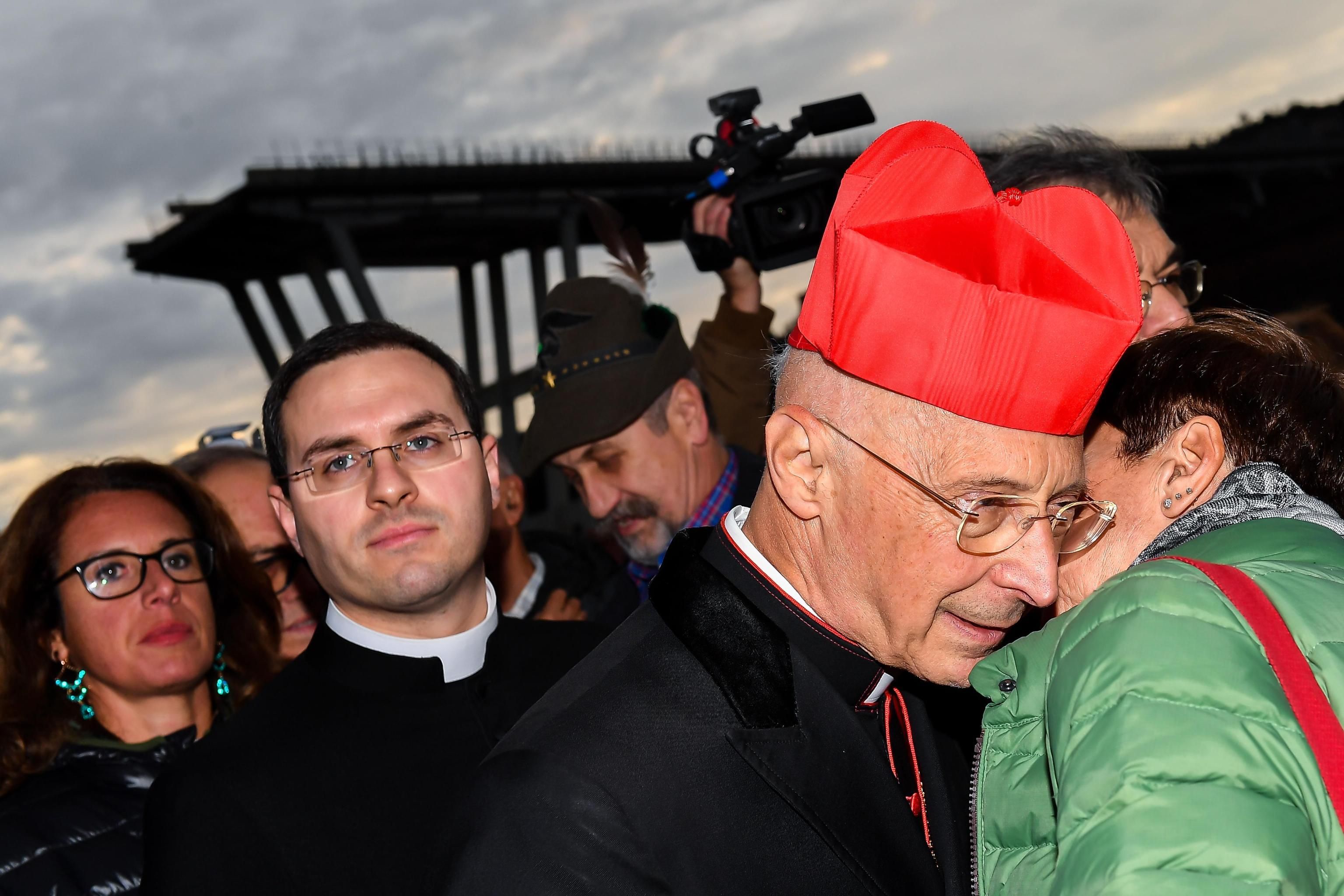 Genova, cardinale Bagnasco depone fiori ai piedi dei monconi del ponte Morandi