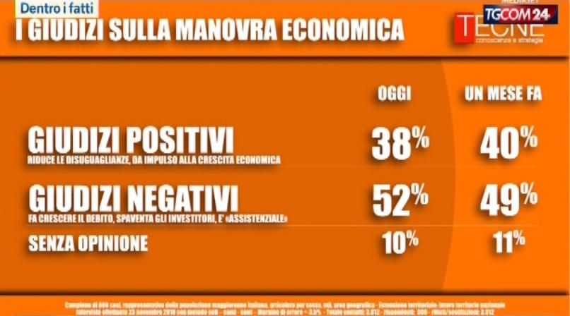 Sondaggio Tecnè, cresce la sfiducia nella manovra del governo