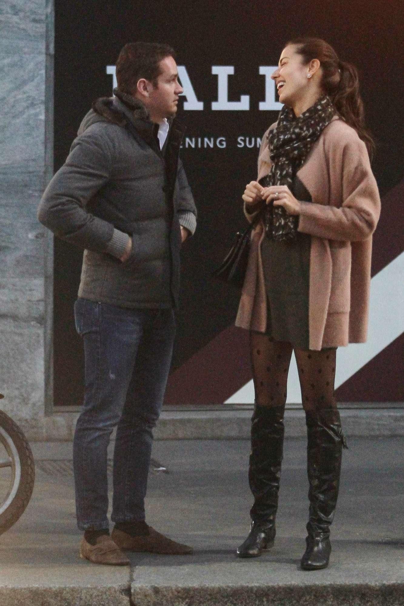 Laura Barriales, mini abito e stivali in Monte Napoleone