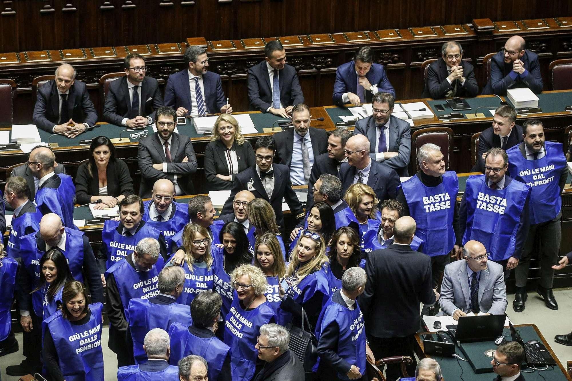 Manovra, protesta di Forza Italia alla Camera con gilet azzurri: "Basta tasse"