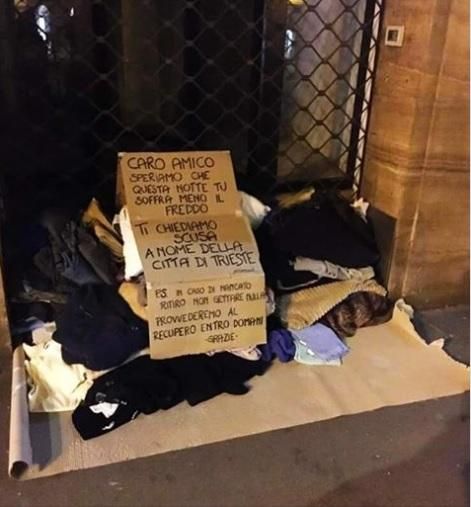 "La Trieste che resta umana": è virale la risposta al vicesindaco che ha gettato le coperte di un clochard