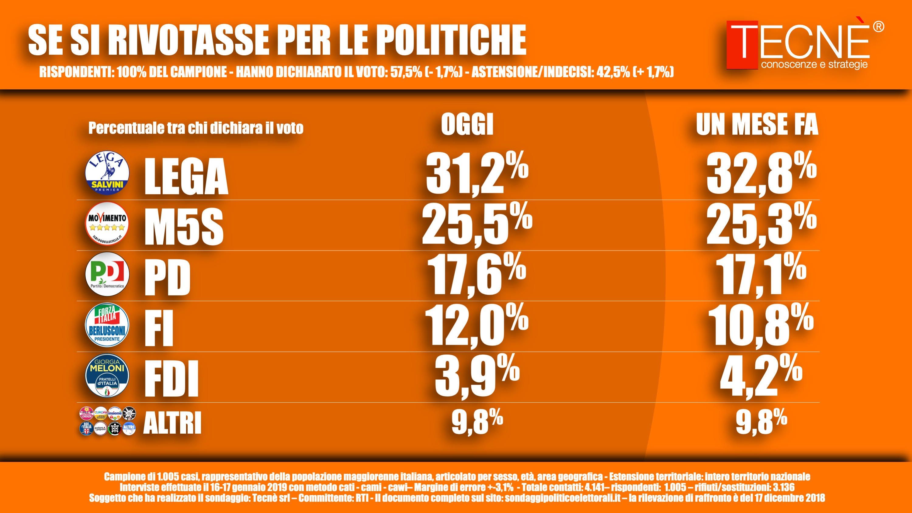 Sondaggio Tecnè per Tgcom24: crescono Fi e Pd | Esclusa l'Italexit