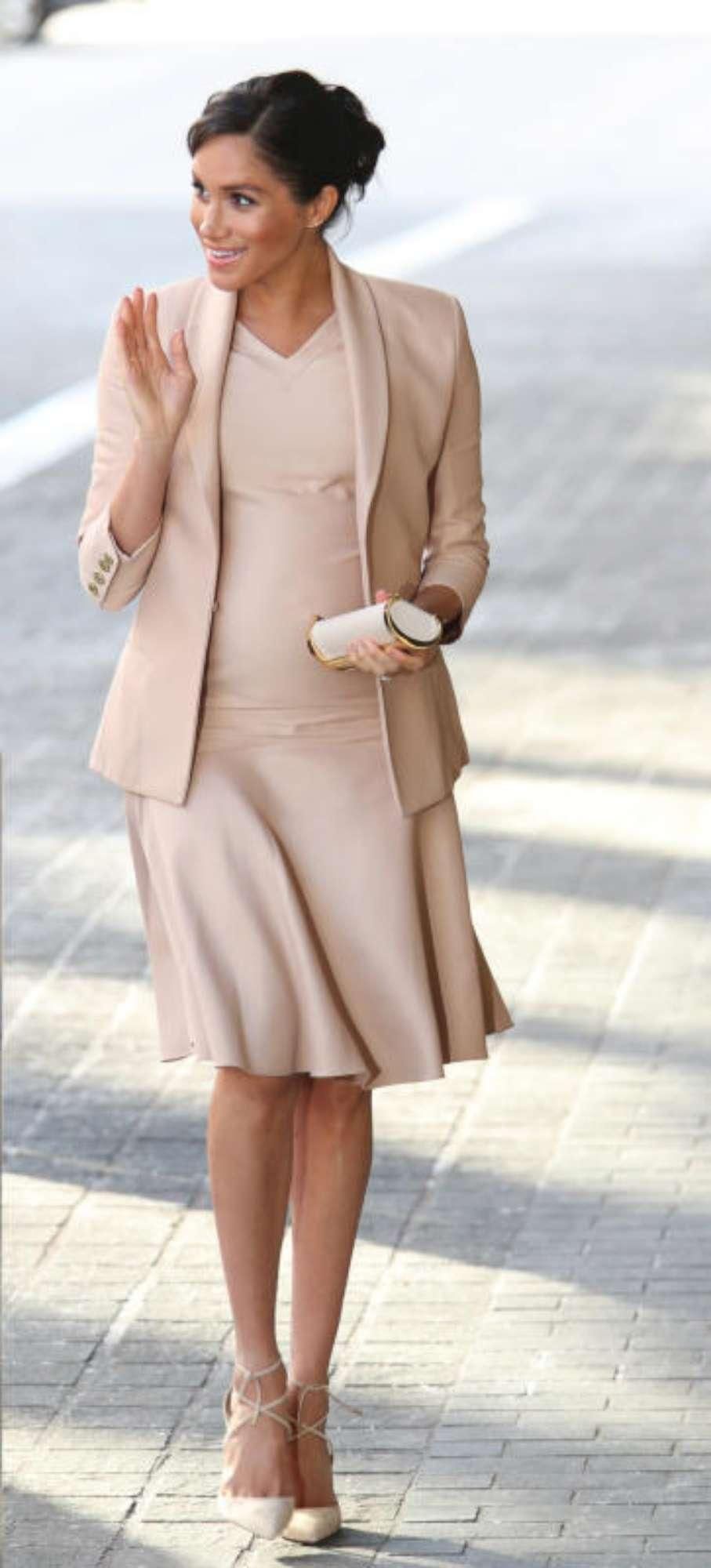 Meghan Markle, pancione in rosa al National Theatre di Londra