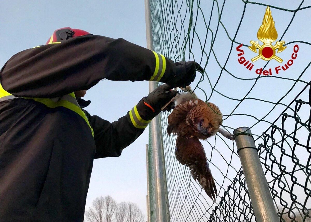 Varese, gufo finisce... in rete: liberato dai vigili del fuoco