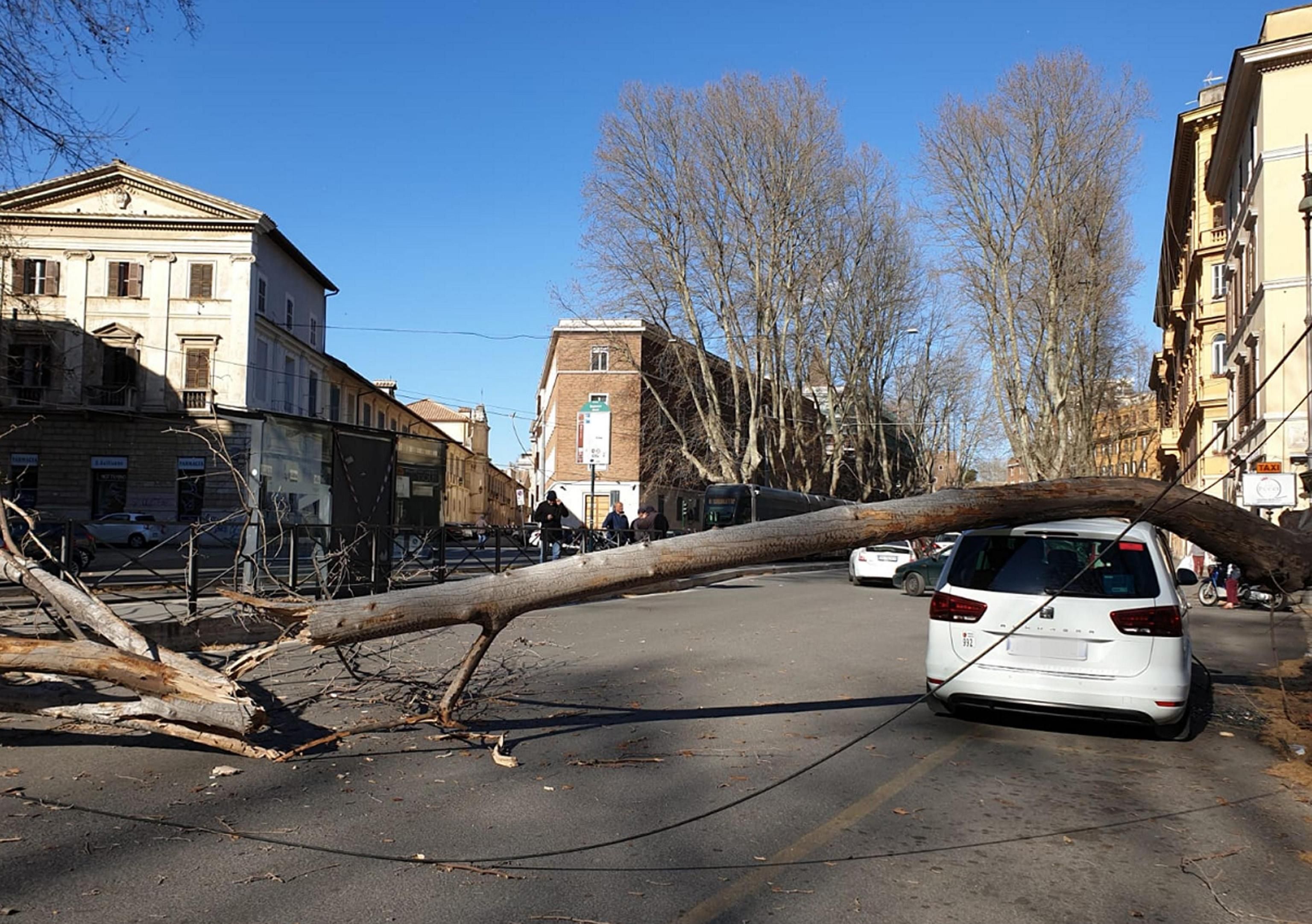 © ansa|Albero caduto su un taxi in viale Trastevere, al centro di Roma