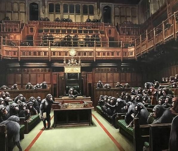 Brexit, Banksy posta il suo Parlamento di scimpanzé: "Ridi ora, ma un giorno nessuno sarà responsabile"