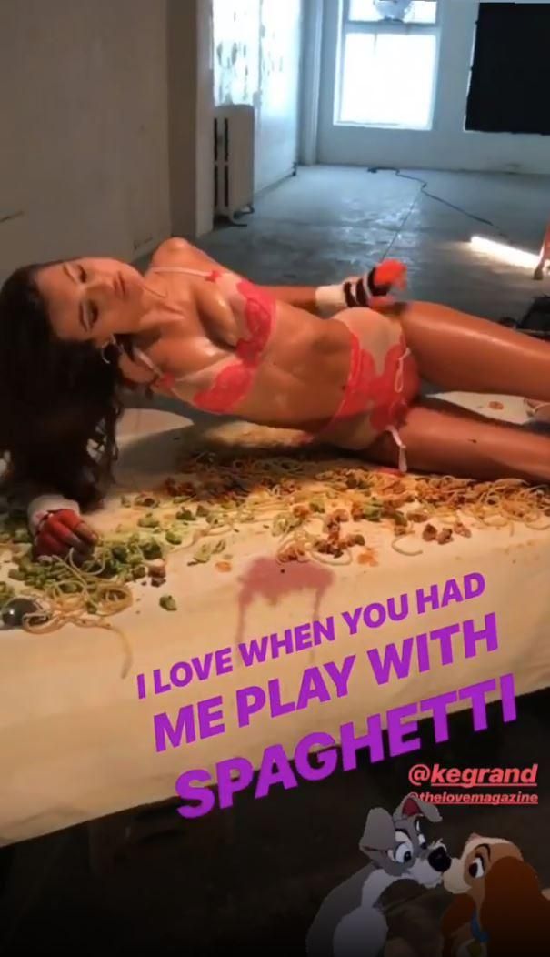Emily Ratajkowski sdraiata mezza nuda sugli spaghetti