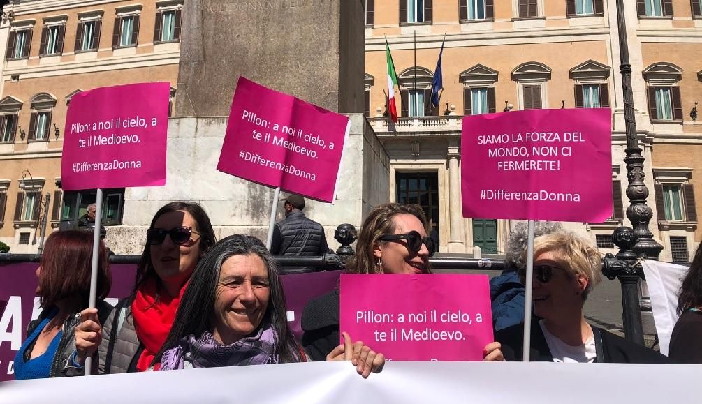 Roma, blitz delle femministe davanti a Montecitorio: "No al Ddl Pillon"