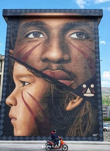 Il piccolo migrante con la pagella cucita in tasca, la nuova opera di Jorit