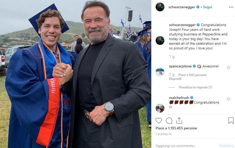 Arnold Schwarzenegger orgoglioso del figlio Jospeh, avuto dall'ex governante, nel giorno della sua laurea