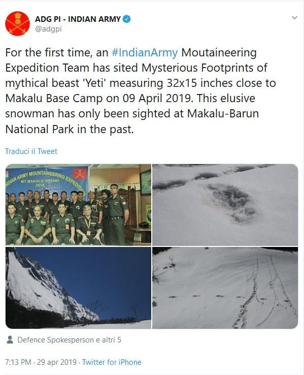L'esercito indiano: "Abbiamo trovato le tracce dello yeti"