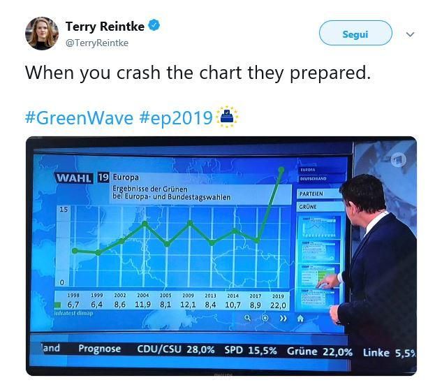 Europee, i Verdi di Germania sfondano... anche il grafico in onda in tv