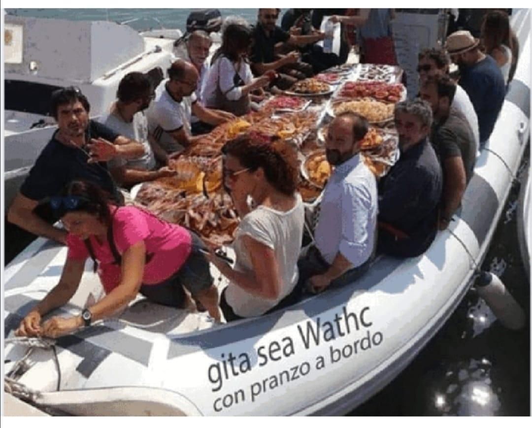 Sea Watch, la finta foto del pranzo di pesce dei parlamentari a bordo di un gommone