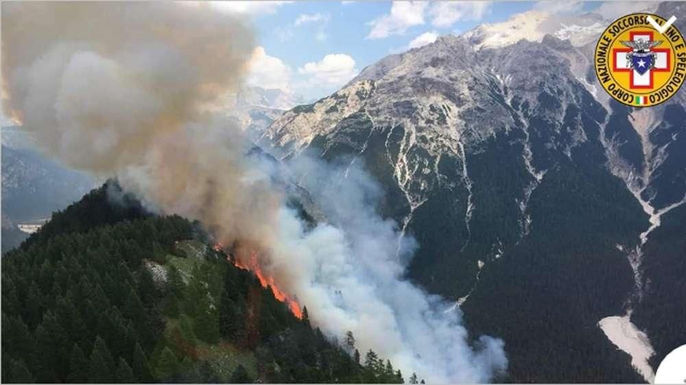 Paura in montagna, fiamme nei boschi sopra Cortina