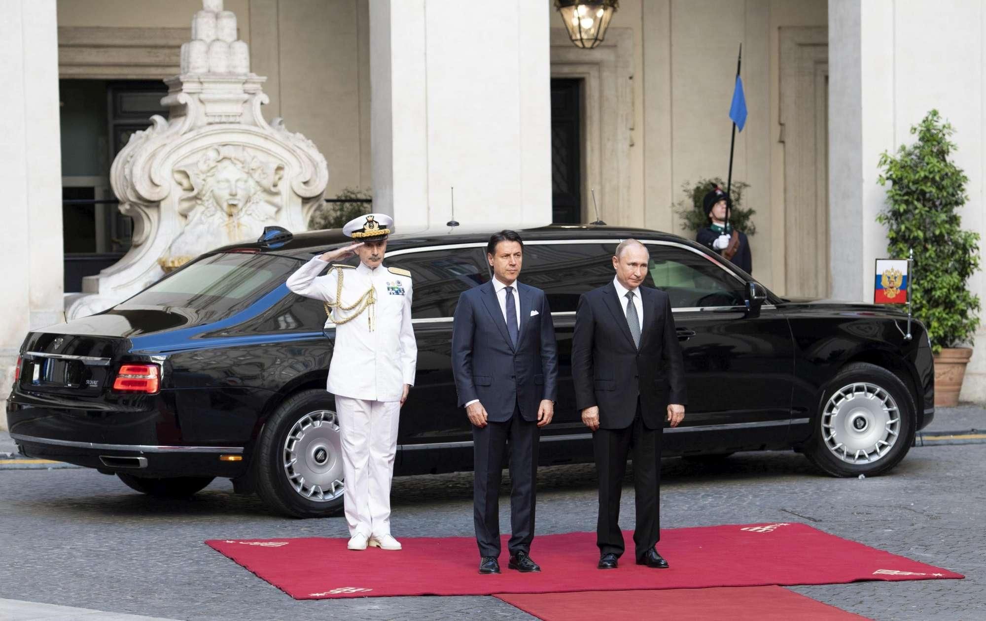 Putin a Roma, il bilaterale con Conte a Palazzo Chigi