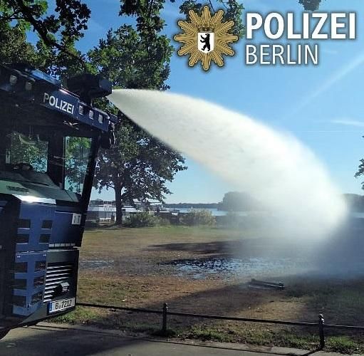 Berlino, i cannoni ad acqua della polizia per arrestare il caldo africano