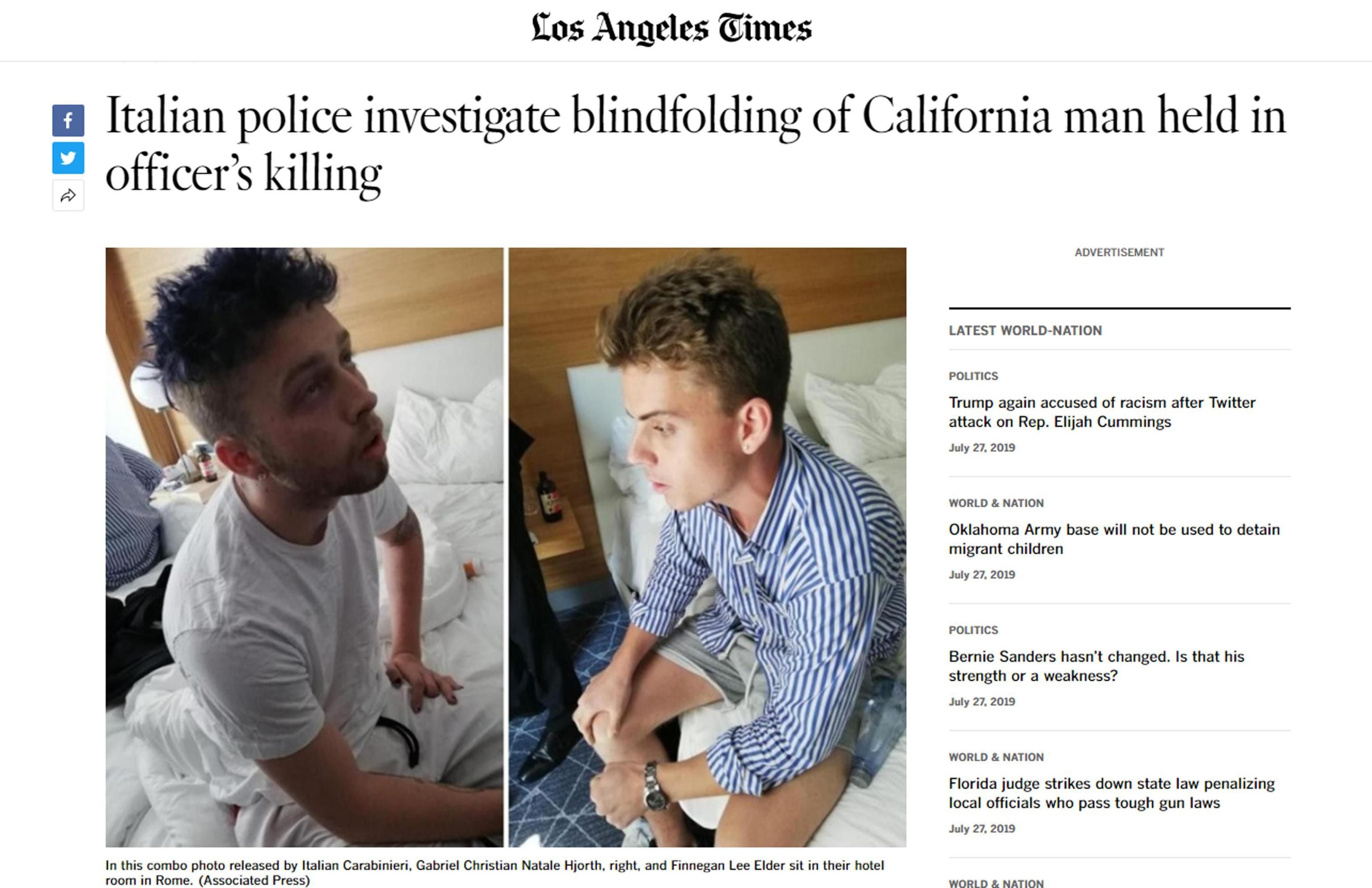 Cc ucciso a Roma, la foto dell'americano bendato sui media Usa: "Scioccante"