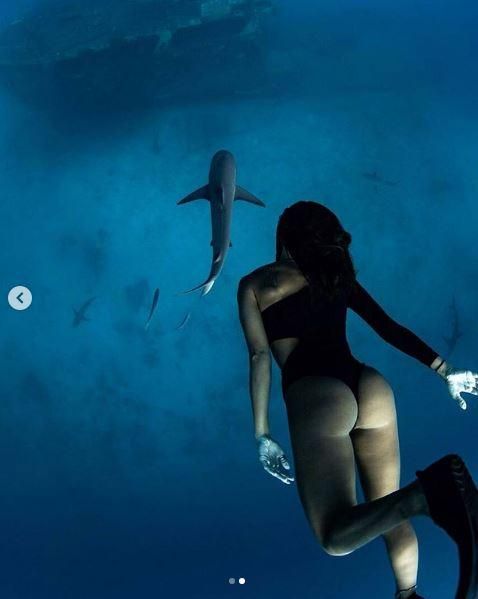 Giulia Calcaterra, bagno da brivido con lo squalo