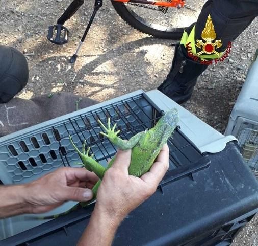 Trovata iguana in una piscina della Maremma, catturata da vigili del fuoco