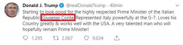 Governo, Trump irrompe nella trattiva tra M5s-Pd: "Spero nel bis di Giuseppi Conte"