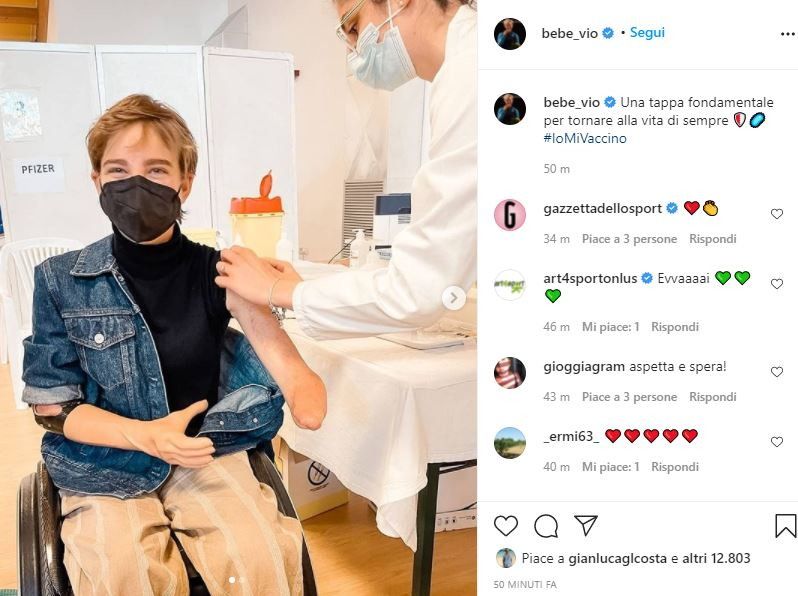Bebe Vio si è vaccinata contro il Covid e ha postato la foto sul suo profilo Instagram, accompagnandola con la frase "Una tappa fondamentale per tornare alla vita di sempre" seguito dall'hashtag #iomivaccino. Molti i commenti all'immagine per congratularsi con l'atleta azzurra.