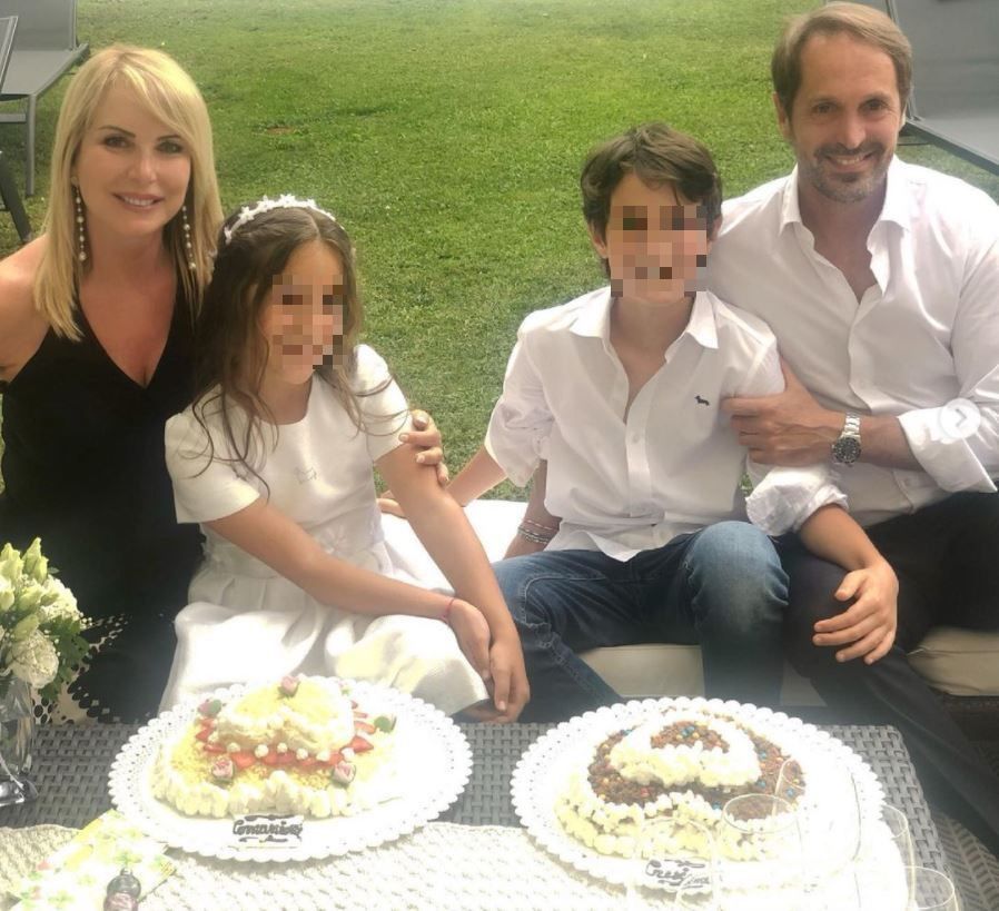 Monica Leofreddi in festa: comunione e cresima dei figli