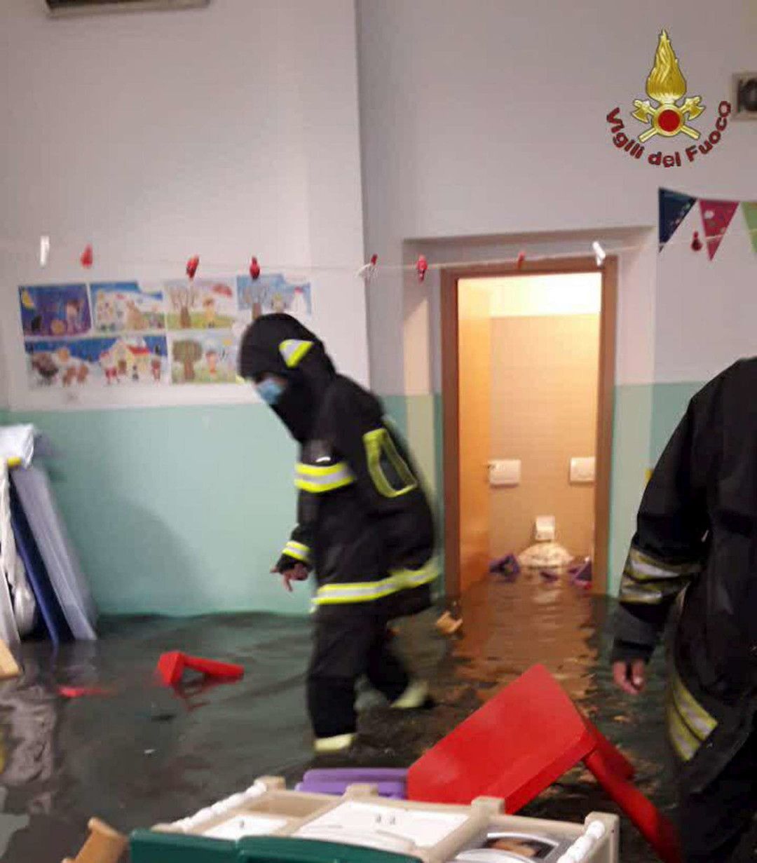 Un violento nubifragio si è abbattuto su Roma e sono numerose le chiamate di soccorso arrivate ai vigili del fuoco. In particolare i pompieri sono intervenuti in via Castelnuovo di Porto numero 14 per soccorrere 40 bambini e sei adulti bloccati in un asilo allagato. I piccoli e il personale sono stati portati fuori della struttura scolastica e messi in sicurezza in un albergo nelle vicinanze. Contattati i genitori per poter riprendere i bimbi.