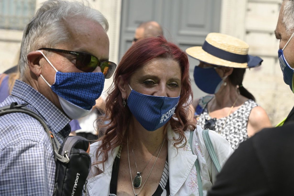 I familiari delle vittime del Covid in protesta davanti al comune di Bergamo