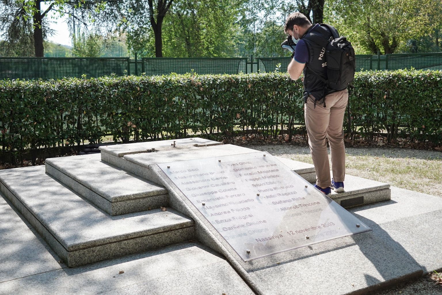 È stato distrutto nella notte del 21 agosto il monumento dedicato ai caduti di Nassiriya, installato in Piazza IV Novembre a Torino. L'opera era stata realizzata dallo scultore e maresciallo dell'esercito italiano Osvaldo Moi e si componeva di 19 figure umane stilizzate. Era stata posizionata nel 2006 per ricordare le vittime della strage avvenuta in Iraq il 12 novembre 2003, quando persero la vita 28 persone tra cui 19 italiani.