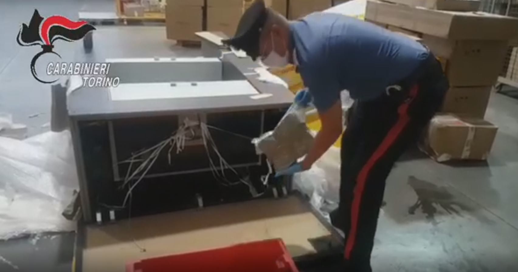 Tentano di spedire 53 kg di droga nascosti in due scomparti segreti di un armadio, ma gli operatori di una società di spedizioni di Orbassano (Torino) notano la difformità tra il peso indicato nella bolla e quello effettivo dell'armadio che doveva essere spedito da Moncalieri a Palermo e richiedono l'intervento dei carabinieri. I militari dell'Arma, dopo un'ispezione, trovano panetti di hashish nascosti in 13 buste di plastica termosaldate. Le indagini permettono quindi di individuare chi avesse ordinato la spedizione: un uomo di 54 anni è stato arrestato, mentre altri due presunti complici sono stati denunciati. Nel box della casa del 54enne sono stati trovati altri 2 kg della stessa sostanza. Il valore commerciale dello stupefacente è stimato in 250mila euro.