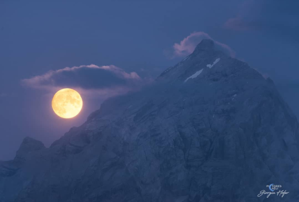 "Avevo appuntamento alle 21 all'osservatorio astronomico del Col Drusciè per una serata osservativa - ha spiegato la Hofer commentando la pubblicazione della sua foto - e mentre aspettavo il mio collega dell'associazione e le persone che avevano prenotato la visita, ecco che vedo spuntare dalle pendici dell'Antelao una bellissima Luna piena immersa nella luce del crepuscolo, il famoso momento dell'ora blu".