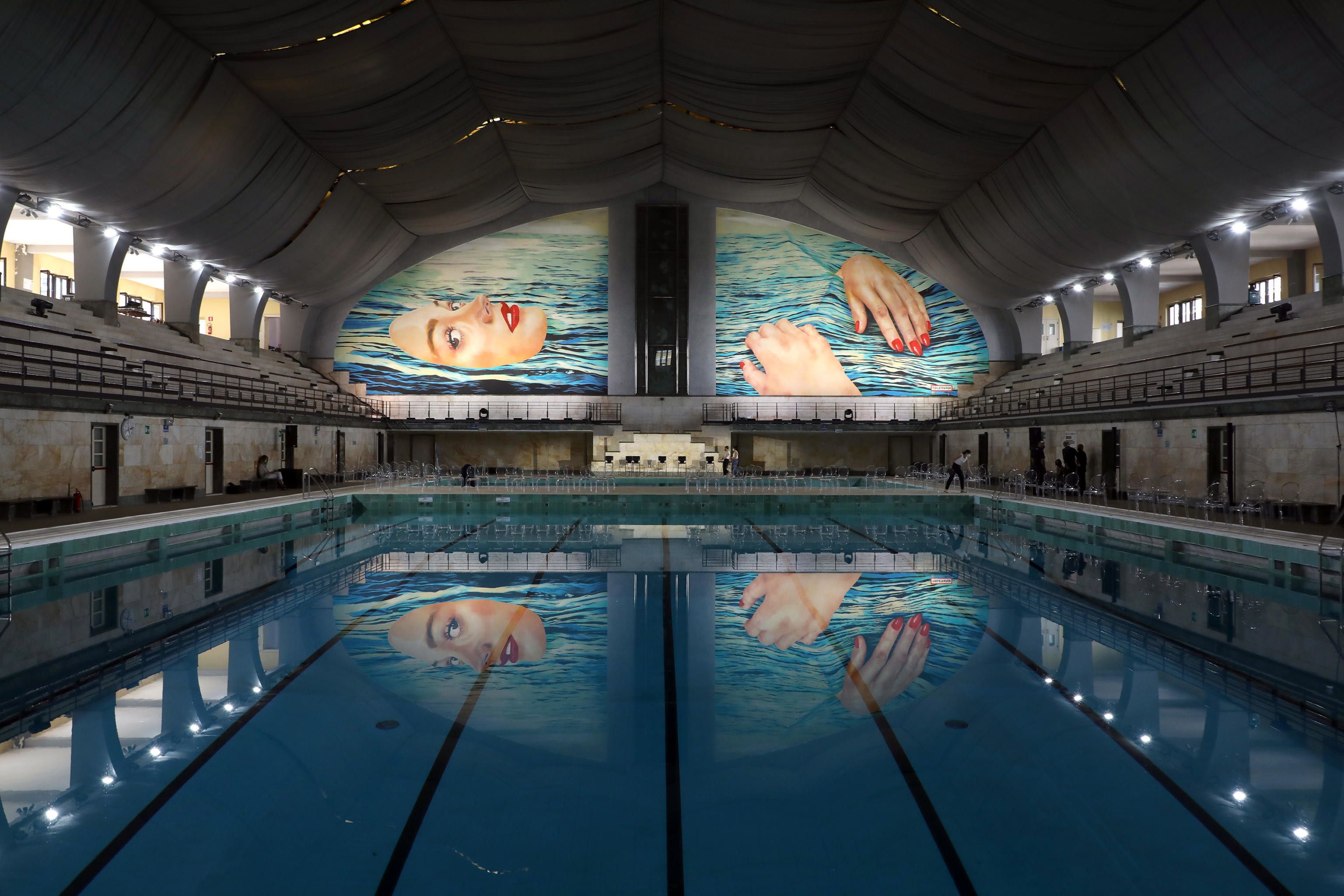 © Ansa|Inaugurato il murale a firma Maurizio Cattelan alla piscina Cozzi di Milano in occasione del Salone del Mobile