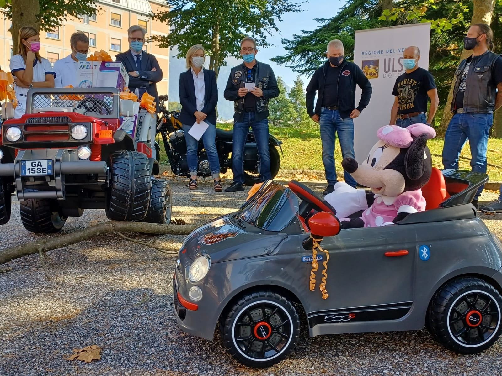 La "terapia del gioco" arriva all'ospedale San Martino di Belluno. Due mini auto elettriche, una Fiat 500 e un Gaucho Grande, sono state consegnate alla pediatria da un gruppo di bikers Harley-Davidson. Grazie a questo dono, i bambini potranno essere accompagnati alle visite specialistiche o, in caso di necessità, in sala operatoria, a bordo delle macchinine. L'obiettivo, come spiega l'Ulss 1 Dolomiti sulla sua pagina Facebook, è "ridurre l’impatto psicologico della malattia, la paura, l'ansia e lo stress dei piccoli pazienti ricoverati e rendere più umane e facili le visite attraverso il gioco".