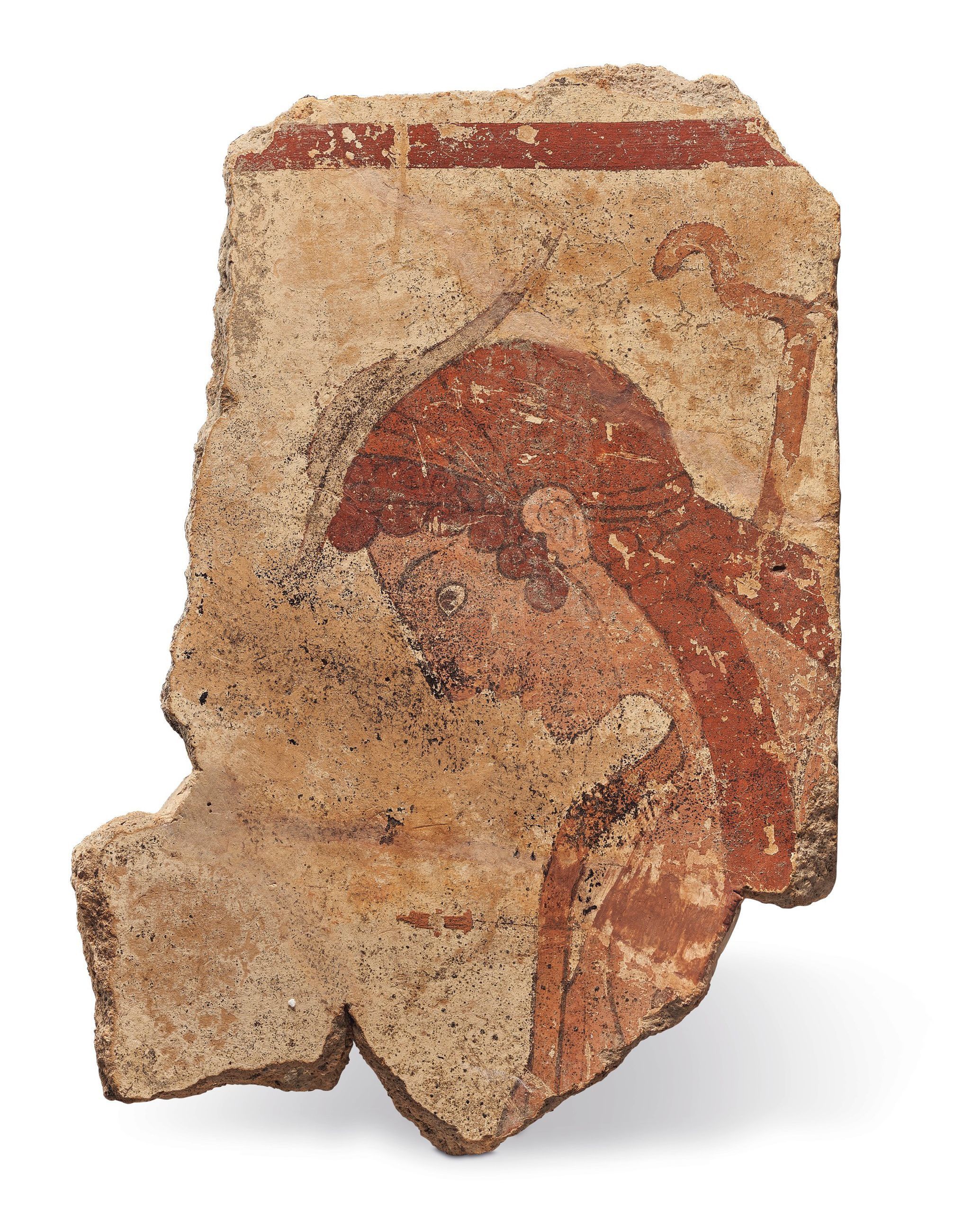 Sulla lastra (alta complessivamente circa 28,6 cm) è raffigurato un profilo di giovane, caratterizzato da un copricapo a tesa da viaggiatore e da un bastone. La lastra è stata acquistata da Fondazione Luigi Rovati presso la casa d'aste Christie's di New York, con il fine di completare la selezione conosciuta di lastre parietali figurate provenienti da Cerveteri già in possesso dello Stato. L'azione di cessione del reperto al Ministero della Cultura, portata a termine dall'istituzione monzese, avviene in continuità con gli obiettivi della Fondazione: promuovere e rendere fruibile a tutti il patrimonio archeologico nazionale, in questo caso affiancando lo Stato e favorendo il rientro in Italia di beni culturali.