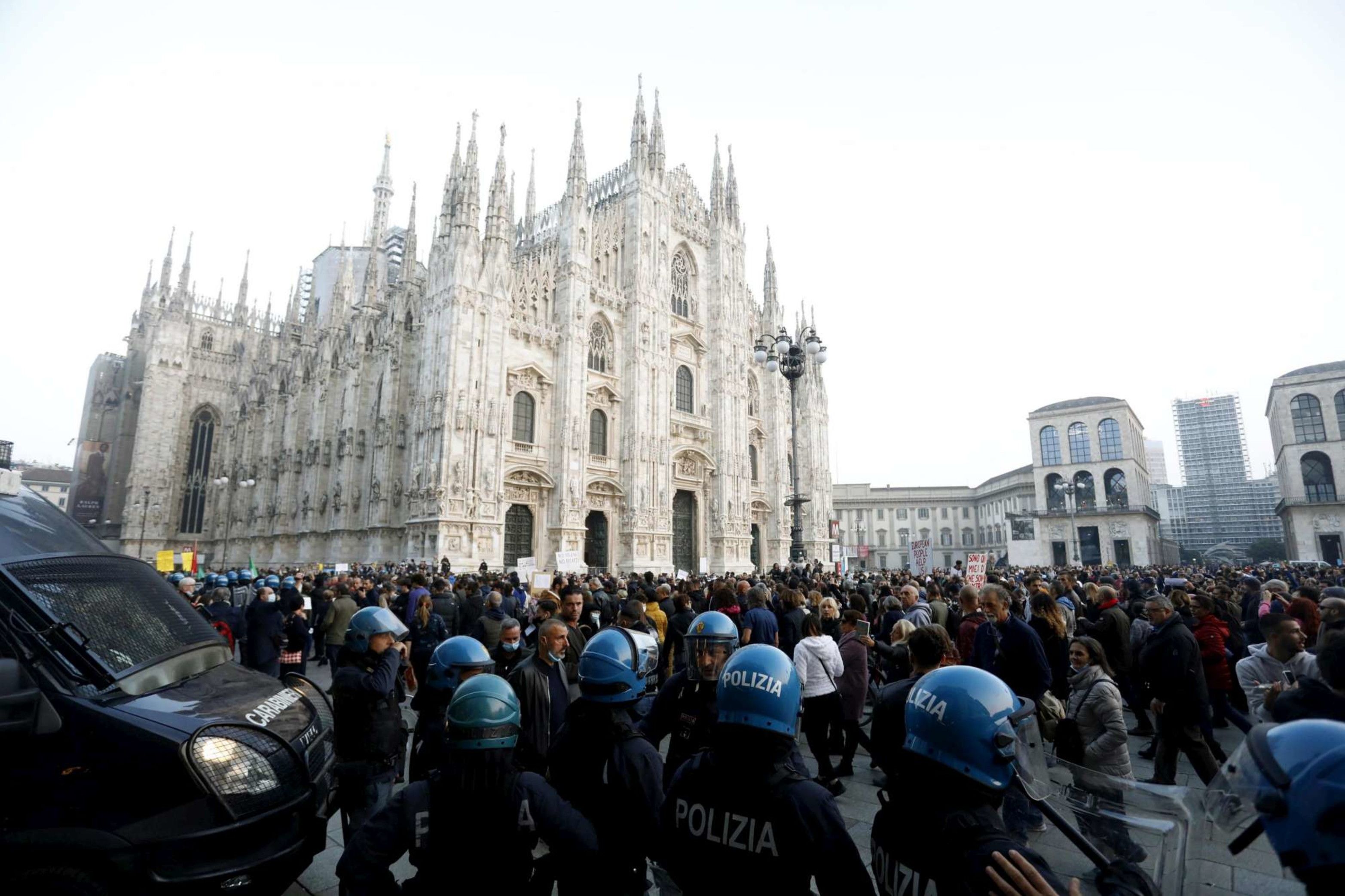 Migliaia di persone (8mila a Milano e 5mila a Torino, centinaia a Roma, Vicenza, Napoli, Trento e in altre decine di città) sono scese in piazza per protestare contro il Green pass.