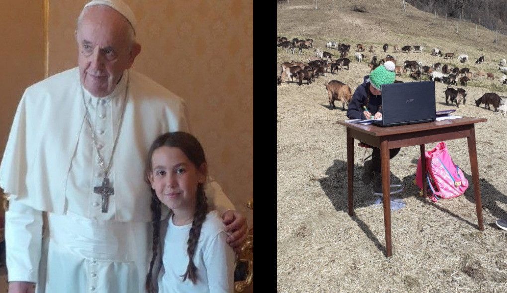 Papa Francesco incontra Fiammetta, la bambina che faceva la Dad ad alta quota in mezzo agli animali