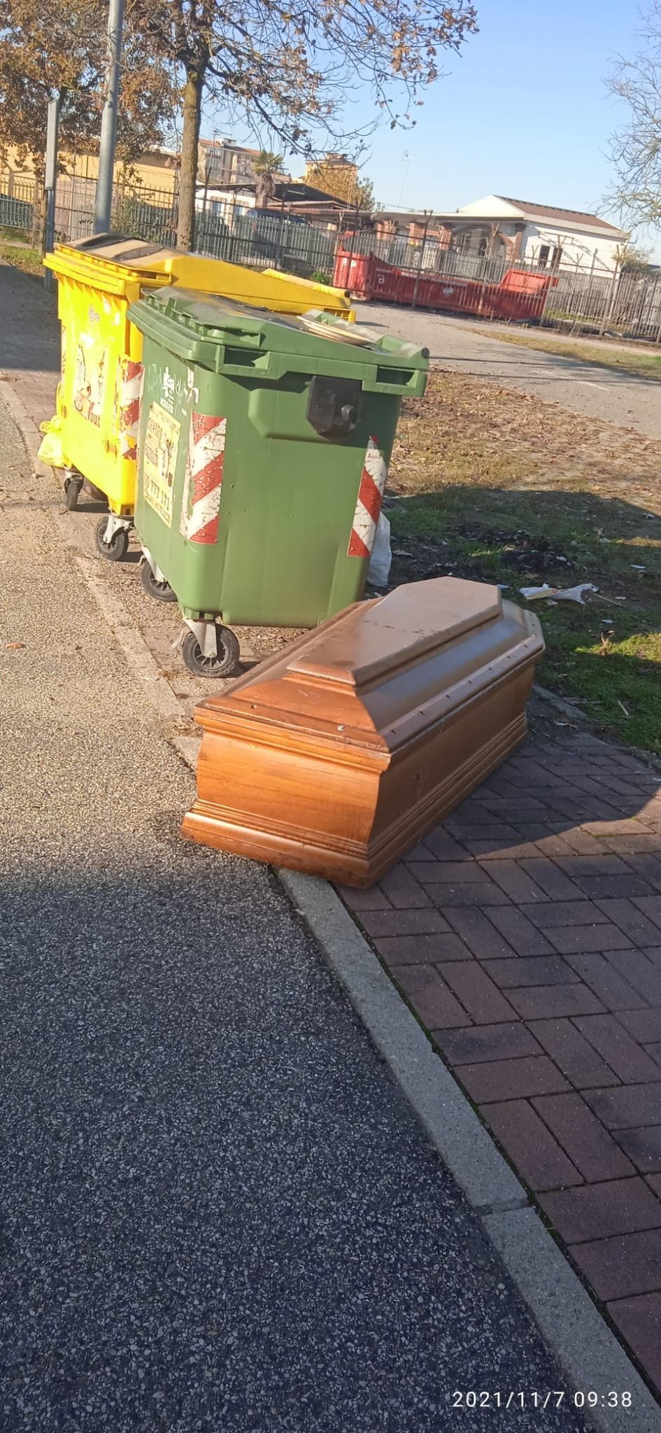 Una bara vuota accanto ai cassonetti dei rifiuti di vetro e plastica. E' quanto hanno trovato domenica mattina gli abitanti del rione Isola, a Vercelli. L'immagine, postata su Facebook dall'ex vicesindaco e membro del Cda della multiutility Atena Antonio Prencipe, ha fatto rapidamente il giro del web suscitando sdegno e preoccupazione. La cassa da morto è stata ritirata da una camionetta di Asm Vercelli, è rimasta nell'isola ecologica per due ore prima di essere rimossa. Il caso è stato poi risolto dalla polizia municipale: si trattava di un articolo acquistato da un gruppo di amici per l'allestimento di una festa di Halloween.