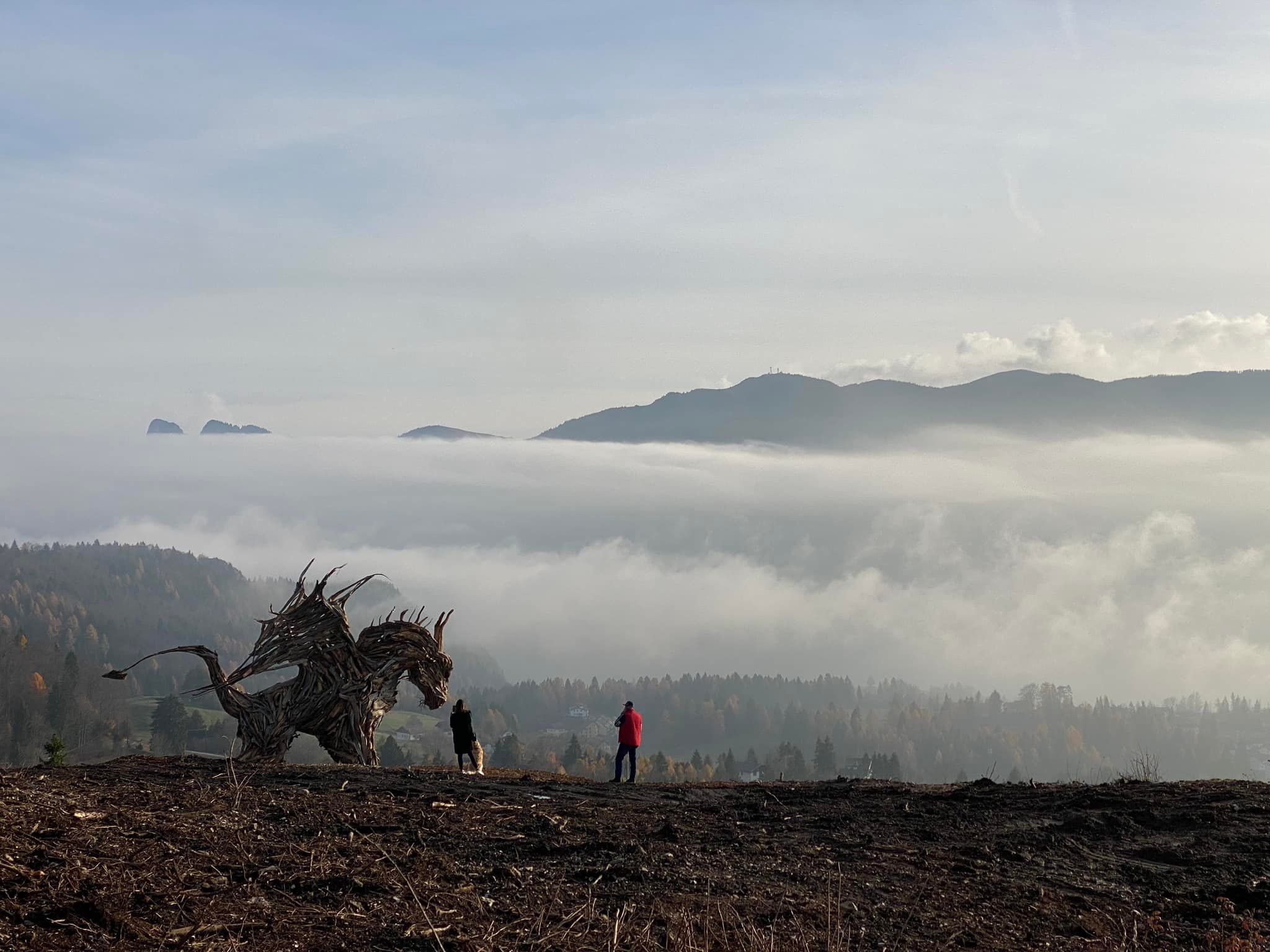 Trento, dai resti della foresta distrutta dalla tempesta Vaia "nasce" un drago