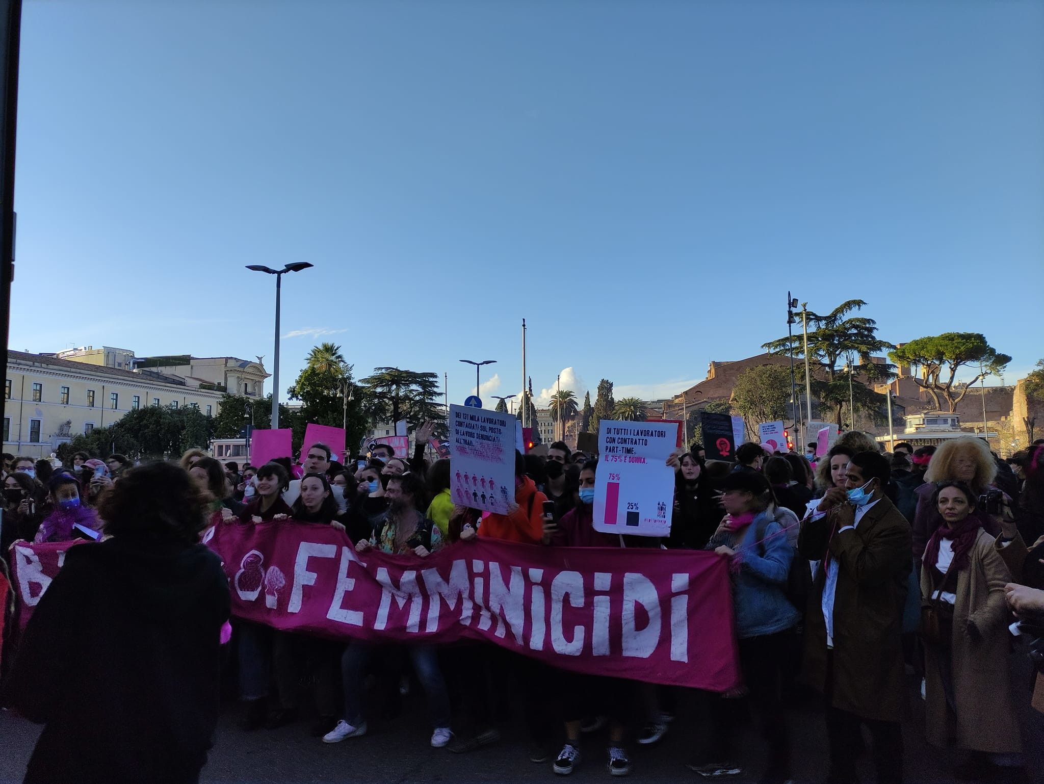 Con l'organizzazione "Non una di Meno" sono scese in piazza a Roma circa due migliaia di donne, e la Capitale si è tinta di fucsia contro la violenza. Le femministe sono tornate a marciare, per la prima volta dopo lo scoppio della pandemia, per dire basta alla violenza contro le donne. "Ci vogliamo vive", è lo slogan che sintetizza bene le "condizioni aggravate dalla pandemia, durante la quale le donne hanno vissuto una grande crisi economica e sociale".